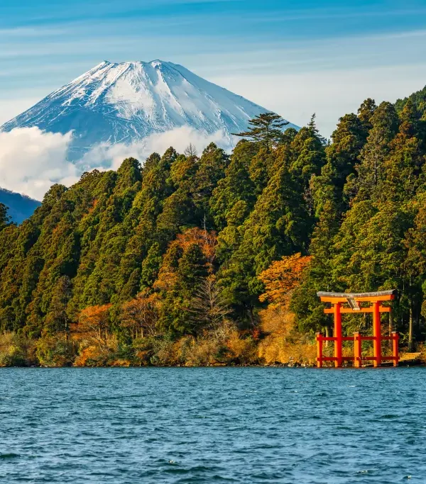 Experience the beauty of Lake Kawaguchi with stunning views of Mount Fuji, explore the volcanic wonders of Owaku-dani Valley, ride the Hakone Ropeway, and relax by the serene Lake Ashinoko in Hakone.
